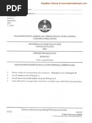 Soalan Prinsip Perakaunan Kertas 2 Percubaan Spm Kelantan 2011 Pdf